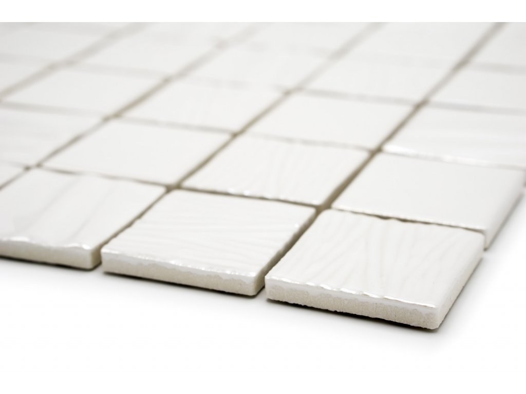 Exkluzivní glazovaná mozaika vytvořená japonskými designéry. Čtvercový formát s reliéfem a jemnou perletí na povrchu.