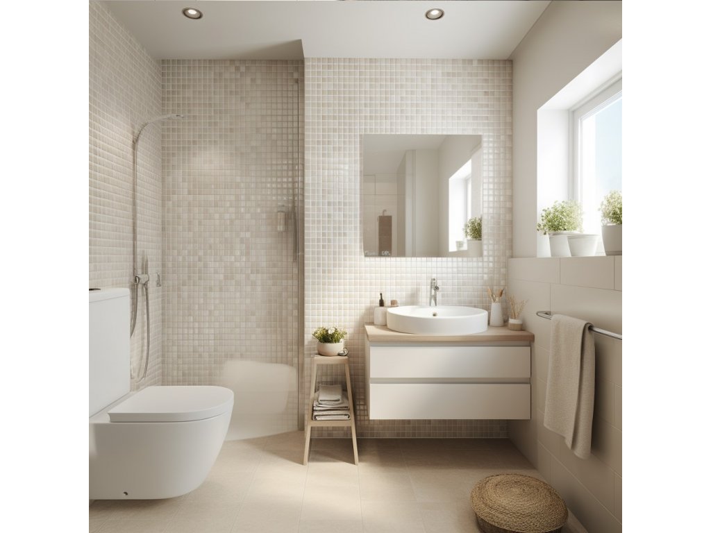 Protiskluzná keramická mozaika nejlépe využije své vlastnosti na podlahách koupelen a sprchových koutů nebo na ochozech bazénů.