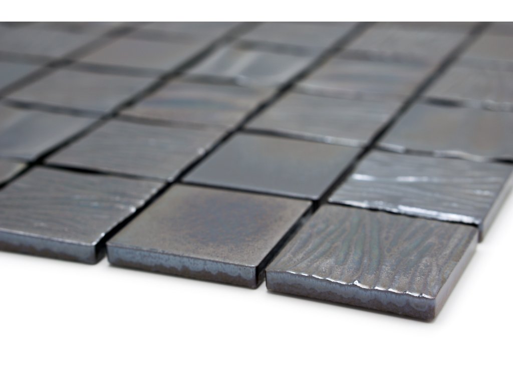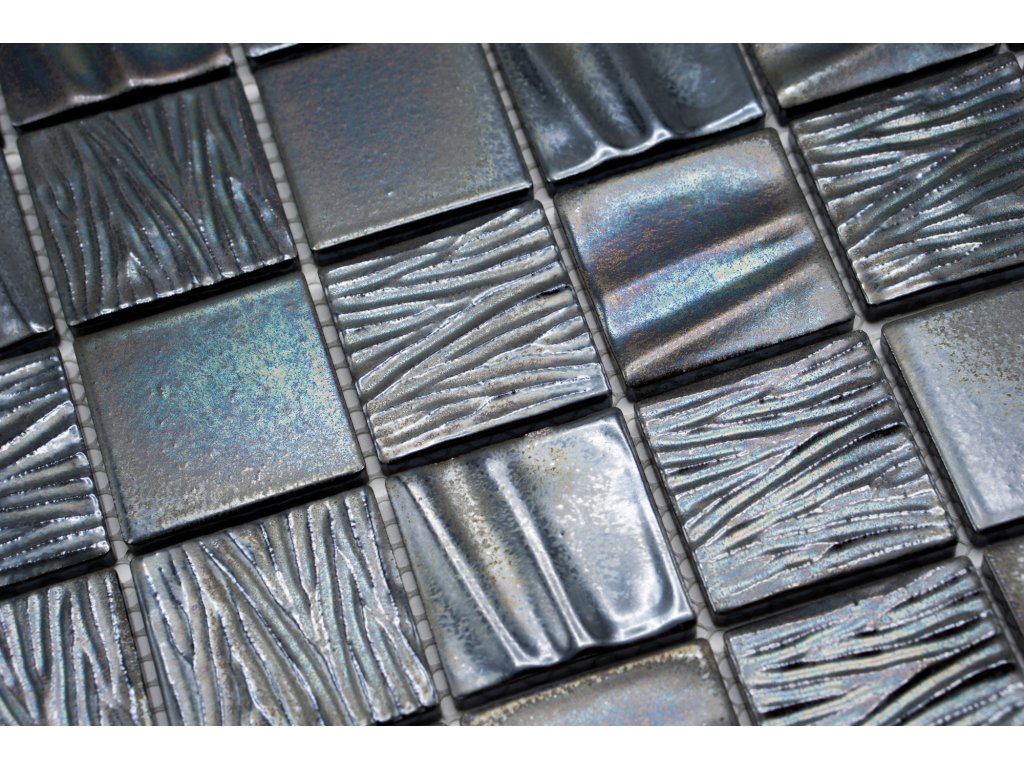 Exkluzivní glazovaná mozaika vytvořená japonskými designéry. Čtvercový formát s reliéfem a jemnou perletí na povrchu.