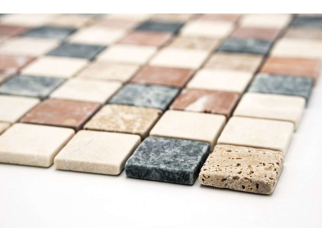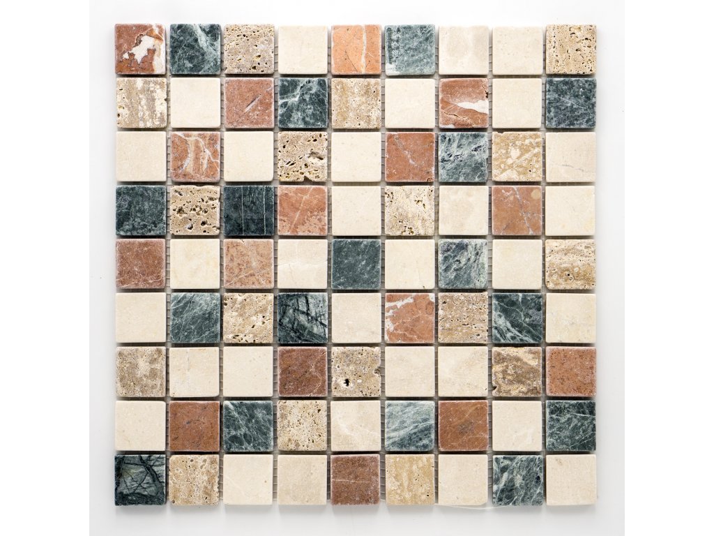 Kamenná mozaika béžová, hnědá, zelená 32x32mm