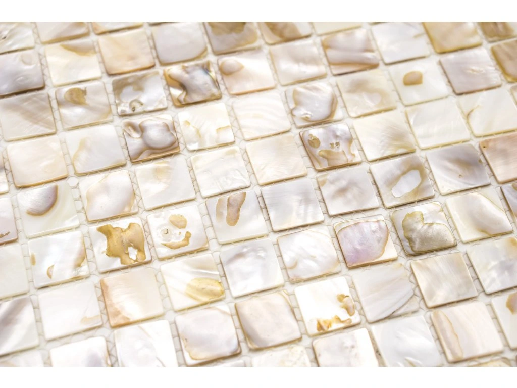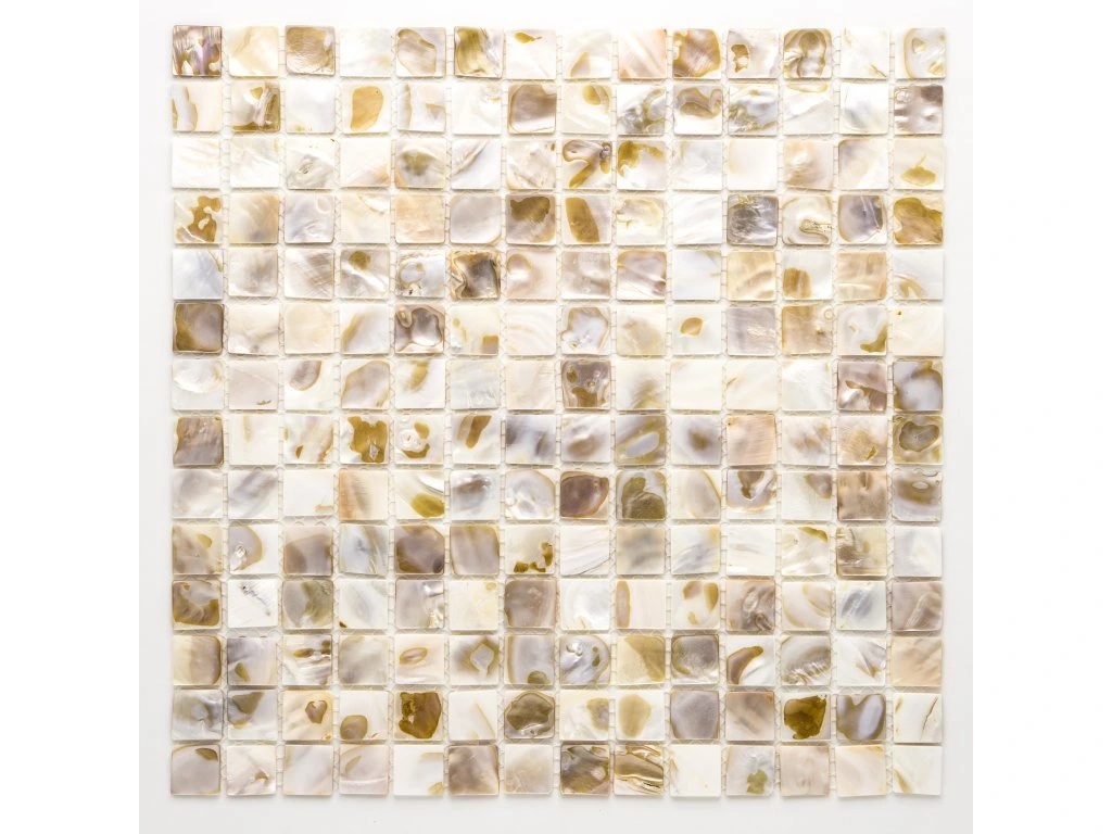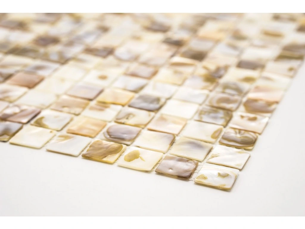 Mozaika perleťová 20x20mm je produkt, který se hodí pro interiér a wellness. Je vyroben z ušlechtilého přírodního materiálu, perleti, a má luxusní design. Jeho rozměr plata je 300x300mm a plocha plata je 0,09m2. Rozměr dílku je 20x20mm a tloušťka 2mm. Podklad je síť a hmotnost 0,35kg. Barva je krémová, béžová a hnědá a lesk/mat je lesk. Tvar je čtverec.